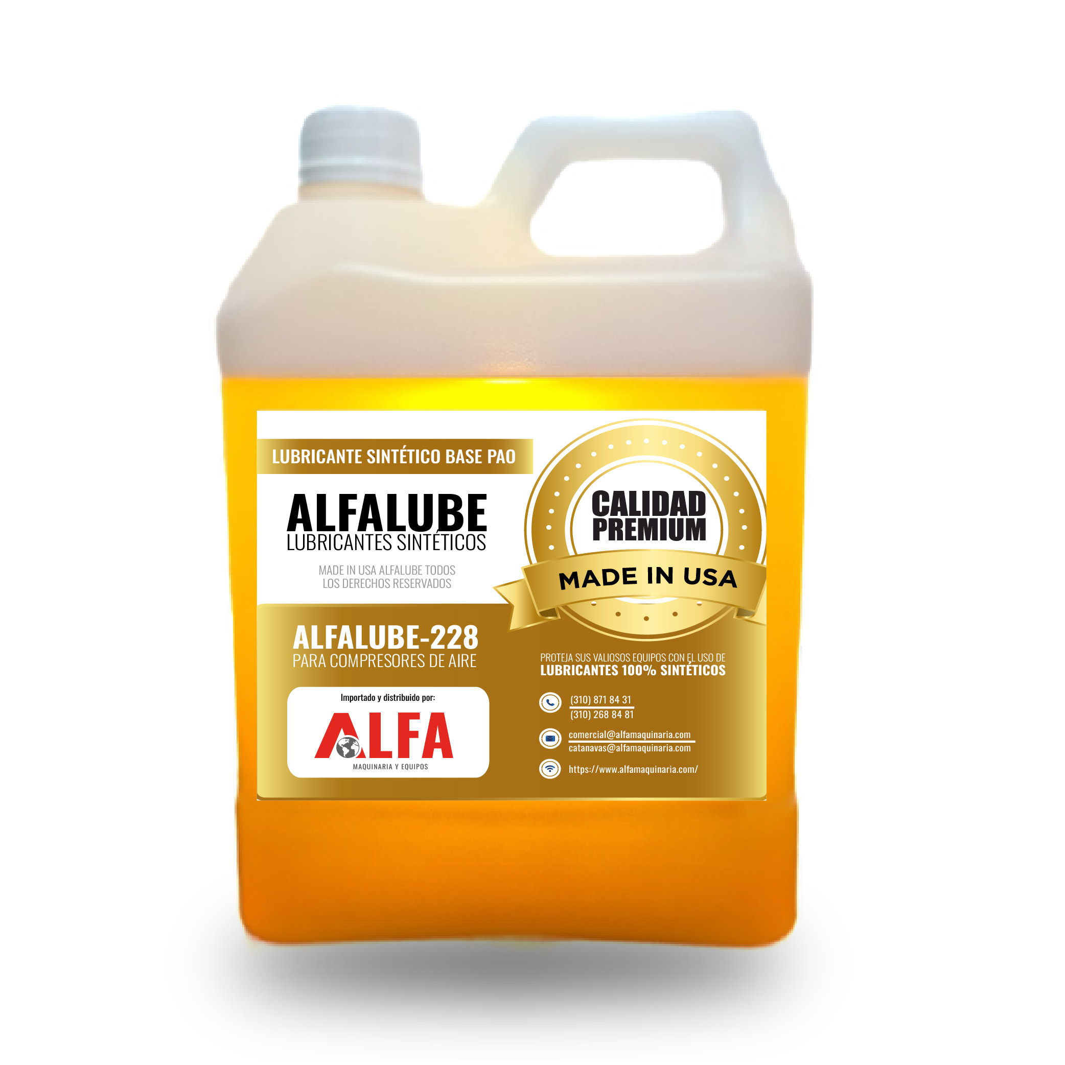 Proteja su valioso compresor con verdadero Lubricante Norte Americano ALFALUBE-228 100% sintético, diseñado con la misma base POLY-ALPHAOLEFINA (PAO). Compatibles con sellos y mangueras del compresor Kaeser.