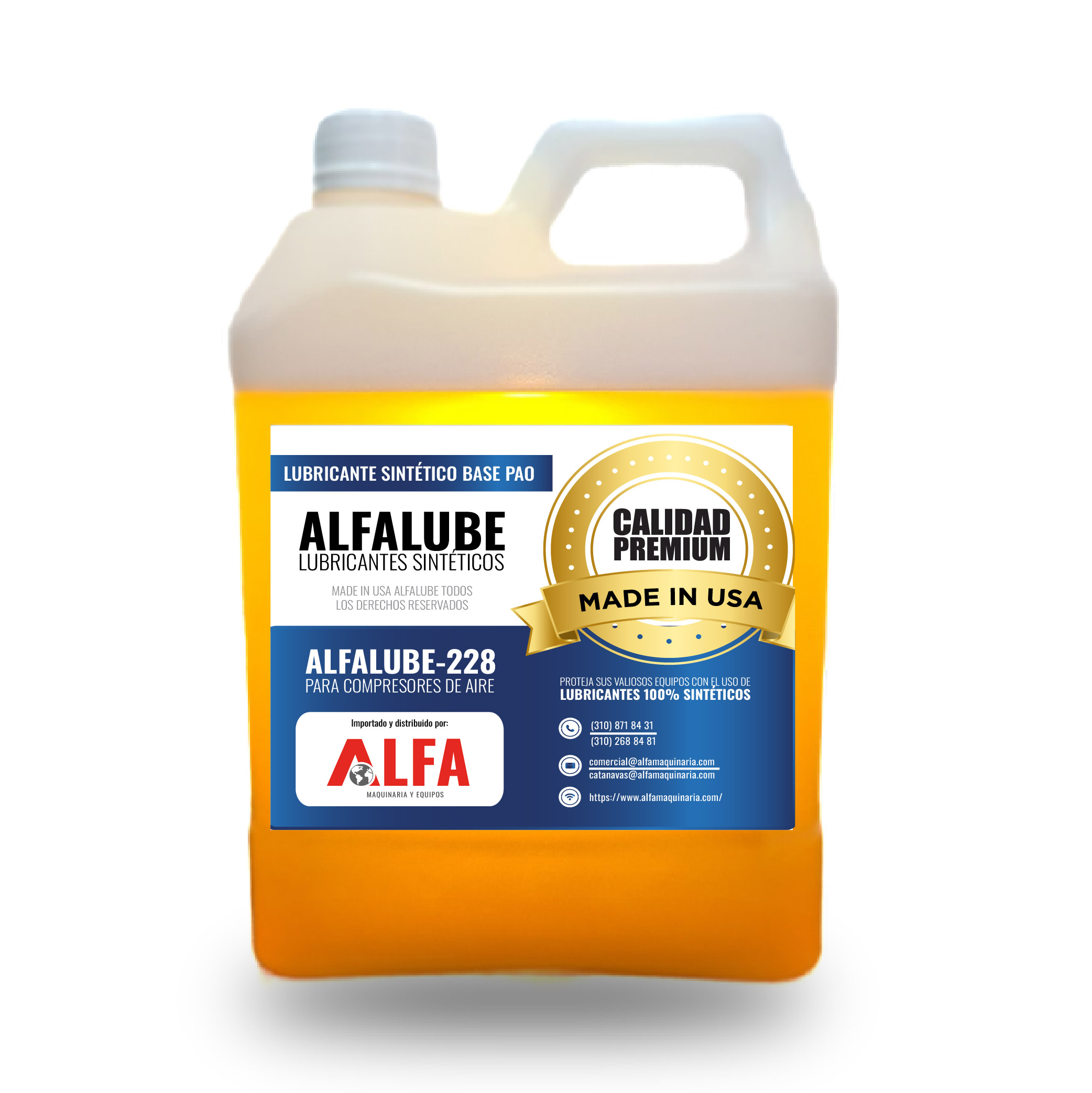 Proteja su valioso compresor con verdadero Lubricante Norte Americano ALFALUBE-228 100% sintético, diseñado con la misma base POLY-ALPHAOLEFINA (PAO). Compatibles con sellos y mangueras del compresor Atlas Copco.